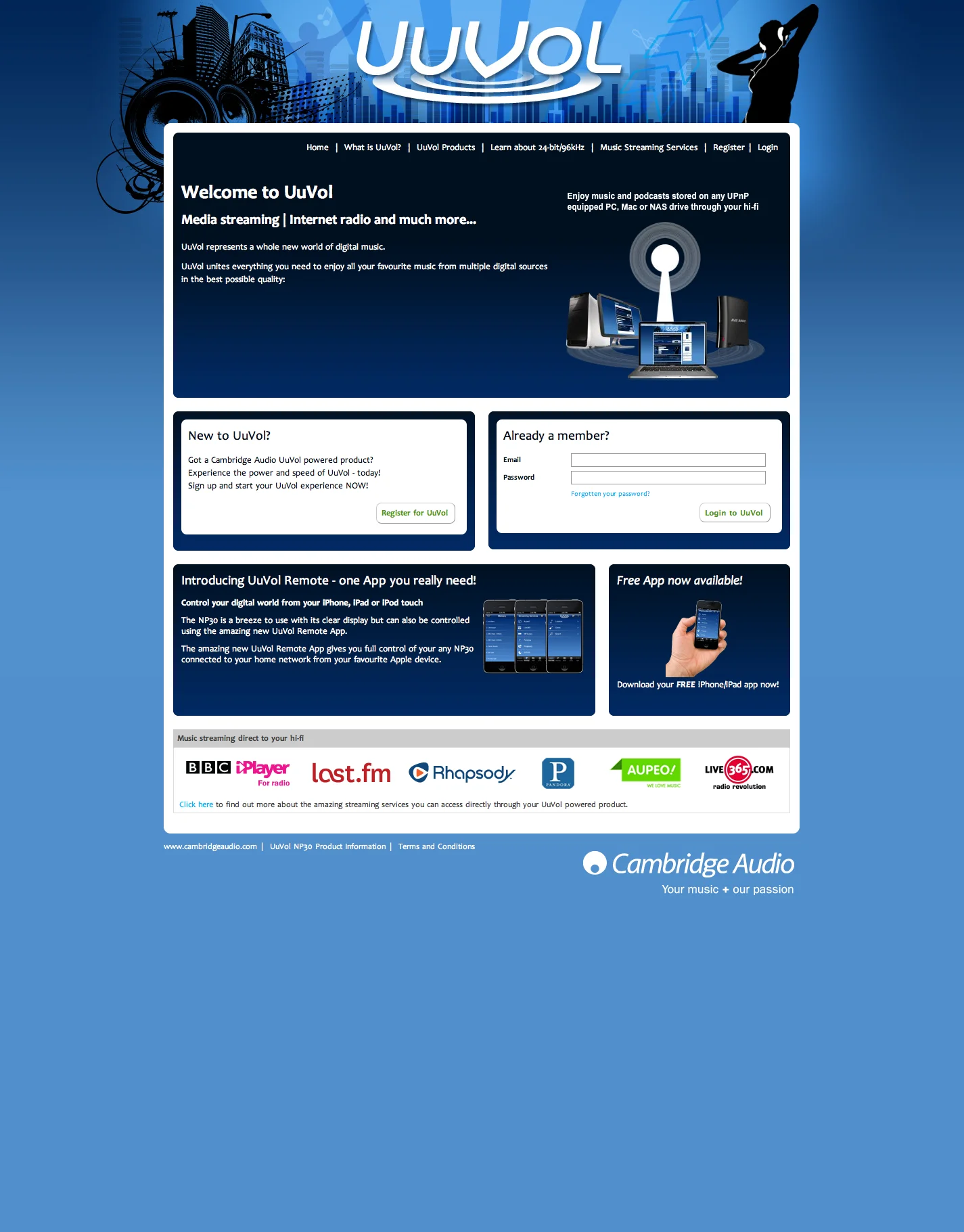 To serve as a content delivery and hardware management hub for UuVol branded digital music hi-fi equipment.