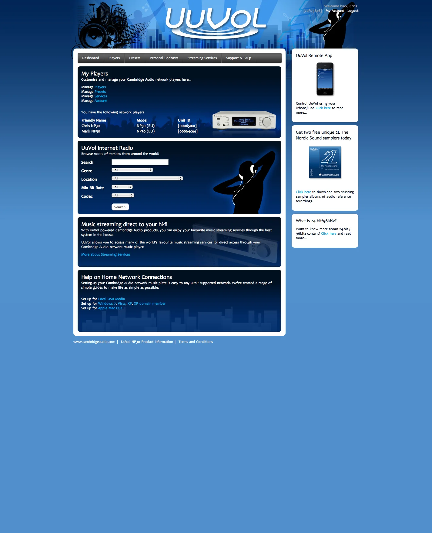 To create a user portal for the UuVol digital network music service. Allowing content delivery and remote hardware management directly from within this user portal.